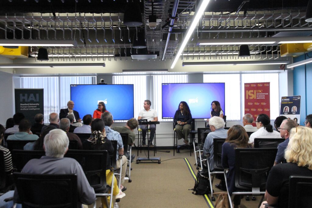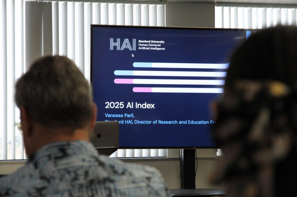 Explore the AI Index photo gallery showcasing the key moments and highlights from the panel discussion and rooftop event.
